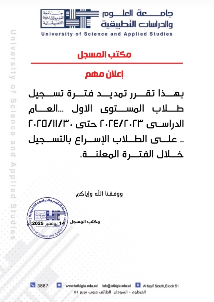 اعلان لطلاب المستوى الاول والثاني والثالث